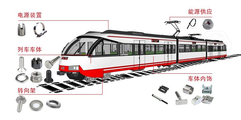 車體指乘客可見的車廂,內(nèi)飾,頂板,燈具,行李架,座椅等等。作為車體緊固件,其穩(wěn)定性和美觀度,實用性的都有較高的要求。車輛轉向架部分,結構強且偏向轉彎的部分,其對緊固件的穩(wěn)定性、可靠性要求高。