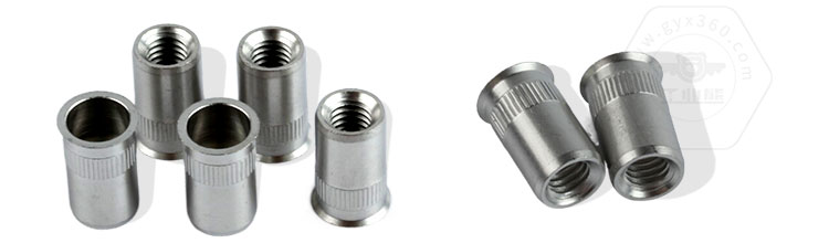 拉鉚螺母按照頭型可以分為平頭,小頭和沉頭,按照結構可以分為通孔與盲孔,與鉚接板的配合,可以分為六角和圓柱體。材質可以有鋁,鋼, 不銹鋼等選擇。適用拉鉚板厚范圍廣,質量可靠,安裝方便,承載能力強。