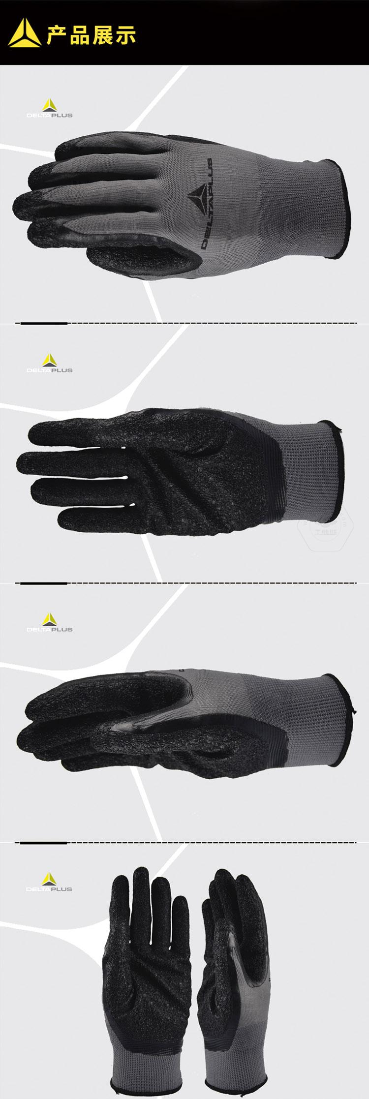 商品名稱:代爾塔 乳膠涂層手套 滌綸防滑 透氣 彈性 抓握性強 耐磨抗撕裂 201630 黑色